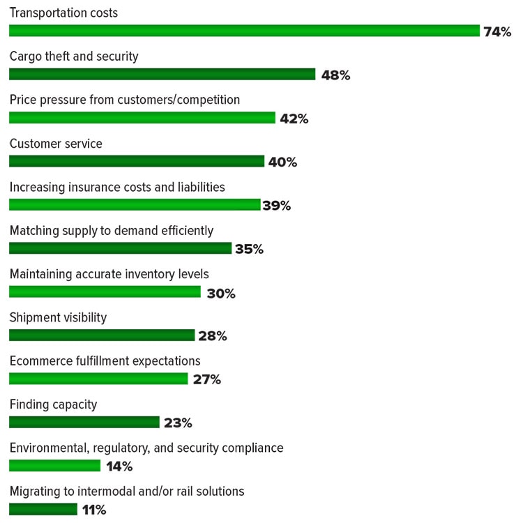 For shippers, financial worries continue to matter the most. In particular, transportation costs at 74% register as their biggest challenge, which has been the case each of the previous two years.